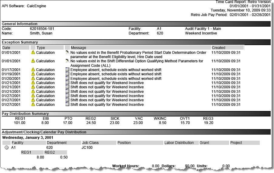 This report is an exact replica of the Time Card Report but contains the Retro data for the particular pay group instance.