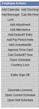 The following related topics are available: Approve Time Card/Unapprove Time Card Education Qualifications, Employee Actions Employee Sign Off/Employee Un-Sign Off |