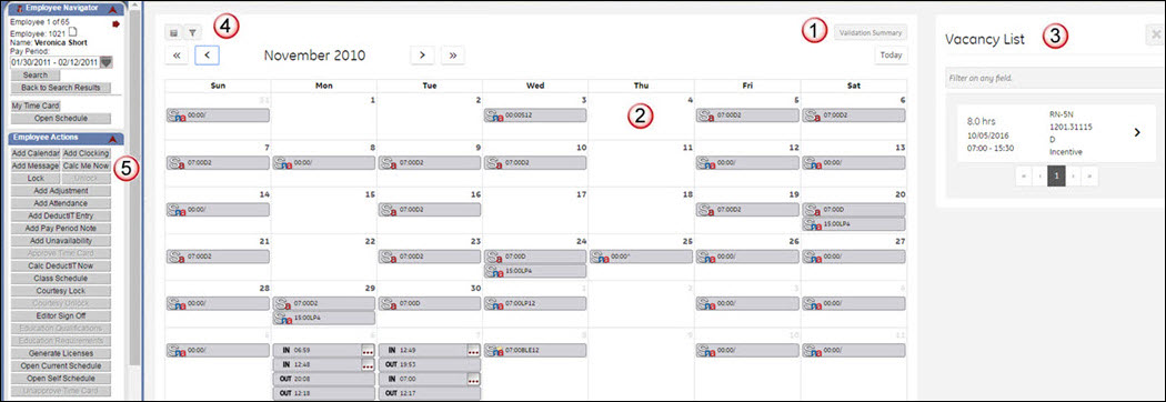 In addition, the Vacancy button appears when there are open shifts that need to be filled. This allows you to request a shift, accept a shift offered by another employee, begin a schedule trade, or request an incentive schedule, such as Schedule Incentive (formerly Shift Bidding).