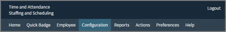 The card and screen options are displayed for the Configuration section. Find the screen you want to open by using one of the following options.