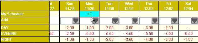In the Employee Schedule section, point with the cursor to the shift to be deleted.