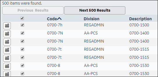 To open the selected records, click the folder to the left of a record.