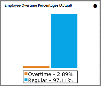 The Employee Overtime Percentages (Actual) card displays the percentage of a supervisor's employees with Overtime and Non-Overtime hours. Depending on preference settings, this information can be either displayed as a pie chart or a bar graph.
